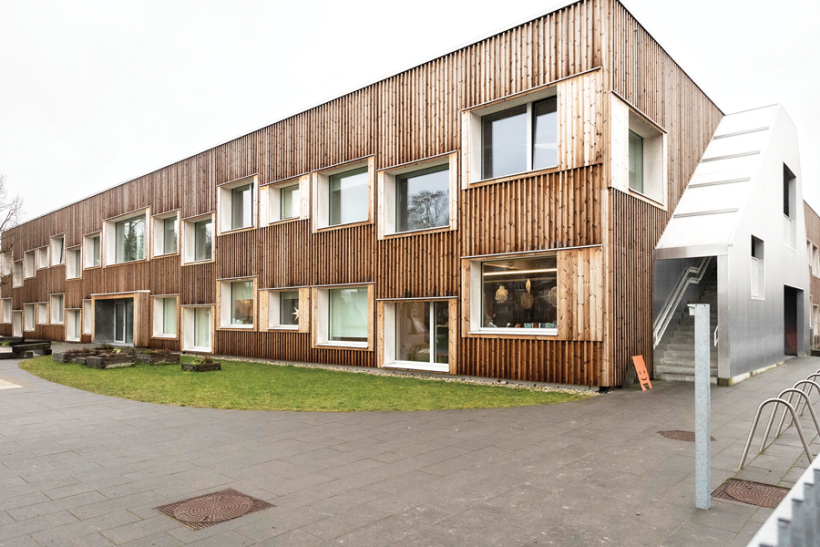 Savukārt Vidzemes Augstskolā kopš 2013. gada realizē dažādu līmeņu mācību programmas par ilgtspējīgu ēku būvniecību, bet no 2023. gada darbojas Jaunās būvniecības skola. «Viens no veiksmes stāstiem par Vidzemes konkurētspēju rūpnieciski ražotu koka ēku industrijā varētu būt tieši tas, ka ir tik stiprs izglītības un pētniecības pamats,» spriež Jaunās būvniecības skolas idejas iniciatore un vadītāja Gunita Ķiesnere. Doma radās, apjaušot, ka nozare mainās, bet formālā izglītība tam netiek līdzi.