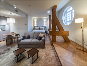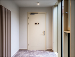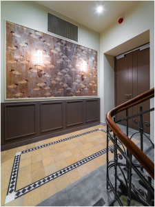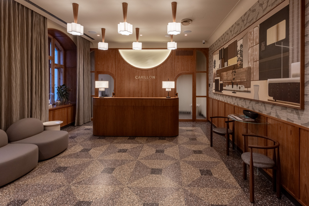 Carillon Aparthotel interjers nav tikai estētisks risinājums – tas ir mērķtiecīgi izveidots stāsts par Rīgas kultūras identitāti. Jūgendstils, kas raksturo Vecrīgas arhitektūru ar tā plūstošām līnijām, augu motīviem un smalkajām detaļām, šeit sastopas ar Art Deco raksturīgajām ģeometriskajām formām, ritmu, kontrastiem un izsmalcinātā materiālu lietojumā. Carillon Aparthotel interjerā abi stili harmoniski savienojas krāsu paletēs, ornamentos un mēbeļu līnijās, kas rada mierpilnu, elegantu vidi. Akcents likts uz dabīgiem materiāliem, īpaši uz koka faktūrām un kvalitatīvu, laikmetīgu dizainu, kas piešķir telpām mūsdienīgu, bet nepārspīlētu greznību.