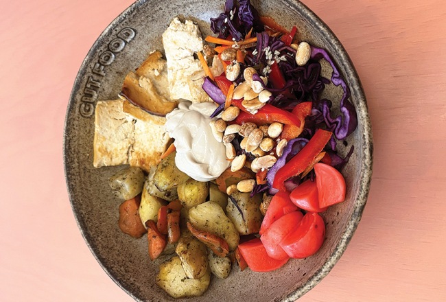 Ēstuve veidota pēc klasiska bistro principa, kur katru apmeklētāju aiz stikla letes gaida porcijas sastāvdaļu izvēles, no kurām pašam sakombinēt savu pusdienu bļodu (vai papīra kārbu līdzņemšanai). Tomēr ierastā «rīsi, griķi, kartupeļi» plus «karbonāde vai kotlete» vietā te ir kārdinoši krāsaini dārzeņi, tajā skaitā fermentēti, un veselīgi olbaltumvielu avoti — lēni gatavots liellops, brieža gaļa, zivs vai vista. Piedāvājums ir mainīgs, bet tajā vienmēr ir arī kāds variants vegāniem. Piemēram, Latvijā ražotais OG Tofu.